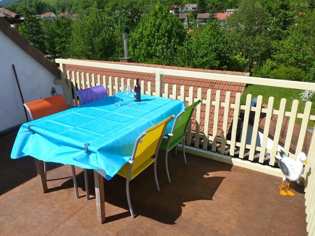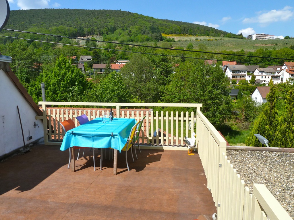 Von der grosszügigen Dachterrasse bietet sich Ihnen ein fantastischer Blick über weite Teile St. Martins und die Weinberge bis zum Pfälzer Wald.